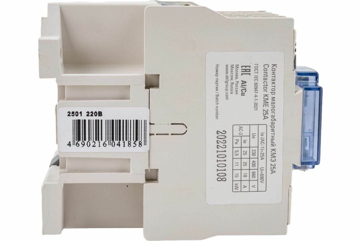 ОПИСАНИЕ. Контакторы КМЭ EKF PROxima состоят из корпуса, закрепленных в нем неподвижных контактов, подвижных контактов, которые закреплены в подвижной части магнитной системы. Неподвижная часть магнитной системы закреплена жестко в корпусе КМЭ. Пружина препятствует смыканию контактов. При подаче напряжения на катушку управления в магнитной системе контактора возникает магнитное поле, которое, преодолевая сопротивление пружины, смыкает магнитную систему и замыкает контакты. При отключении напряжения с катушки управления пружина размыкает контакты. Возможна коммутация алюминиевыми медным проводом. ПРЕИМУЩЕСТВА. Высокая коммутационная стойкость. Высокая коммутационная износостойкость. Серебросодержащий композит на контактах обеспечивает низкое переходное сопротивление и высокую сопротивляемость разрушению при коммутации. Рифленая поверхность дополнительных контактов для присоединения с целью увеличения токопроводности и надежности соединения. Сердечник выполнен из высококачественной электротехнической стали, что позволяет катушке надежно удерживать контакты во включенном состоянии при нормальном напряжении катушки управления. Магнитная система оснащена резиновыми демпферами, что уменьшает шум при работе. Корпус и подвижная траверса выполнены из термостойкой пластмассы. Самопозиционирующиеся подвижные контакты. Они могут качаться, подпружинены и имеют сферическую поверхность. Мостиковый контакт создает условия для быстрого гашения дуги. Сердечник магнитной системы с уменьшенными вихревыми потерями. Наличие дополнительных контактов для организации автоматизации. Возможность установки как на DIN-рейку, так и на монтажную панель. Маркировочная площадка в комплекте для идентификации контакторов в щите. Тарельчатые зажимы для надежного присоединения проводников. ПРИМЕНЕНИЕ. Включение/отключение технологических машин и оборудования, в том числе высокодискретных автоматических линий, решения для управления и автоматизации. Включение/отключение освещения: производственного, уличного, офисного, коммерческих объектов. Включение/отключение технологических машин и оборудования, в том числе высокодискретных автоматических линий, решения для управления и автоматизации. Включение/отключение освещения: производственного, уличного, офисного, коммерческих объектов. Производство оборудования массового использования: тепловые пушки, обогреватели, модульные кондиционеры, электрооборудование для сада и дачи.