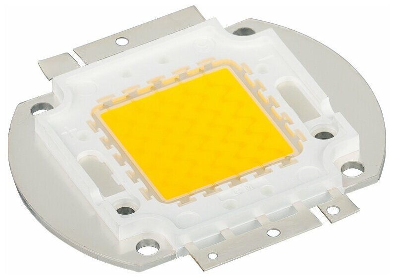 Мощный светодиод, размер 56×52×4,3 мм. Чипы Taiwan Epistar 33mil. Цвет свечения БЕЛЫЙ 6000-6500К. Угол 120°. Световой поток 3000-3300 лм при If= 1050 мА, P=30 Вт. VF=30-34 В.
