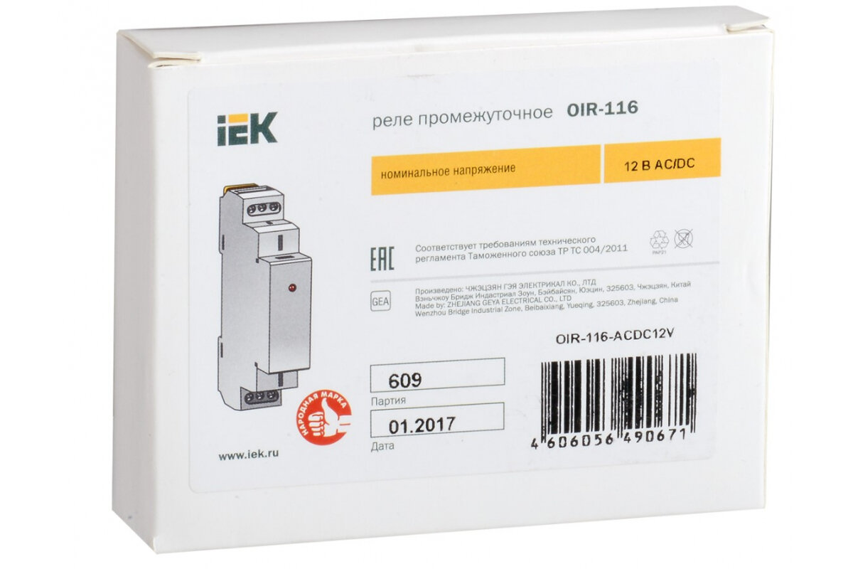 Сервис сравнения цен СкидкаГИД предлагает сравнить цены на товар «OIR-116-ACDC12V Промежут. реле.OIR 1 конт (16А). 12 В AC/DC IEK»