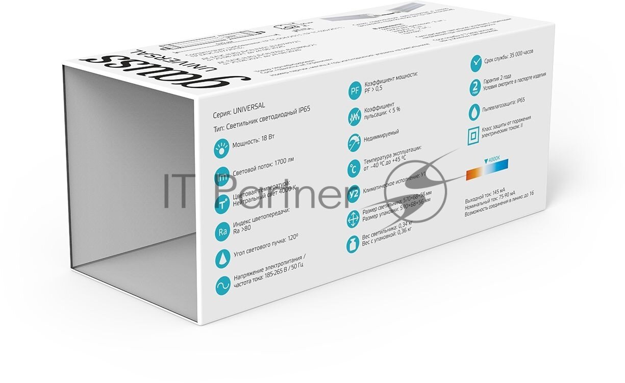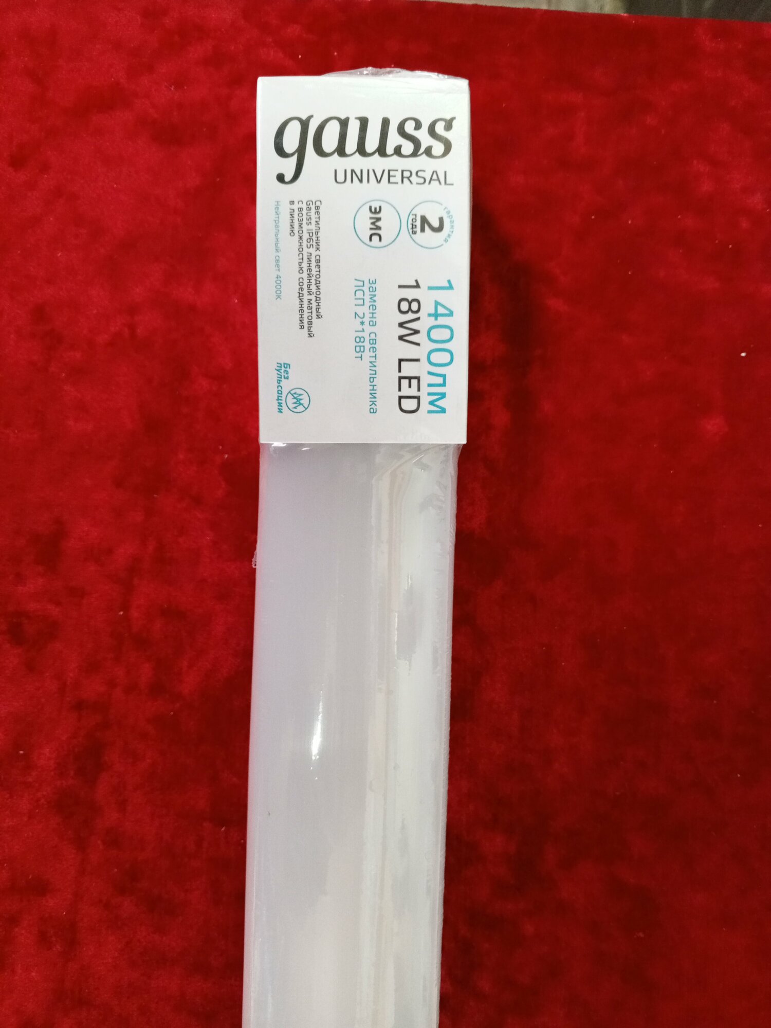 Gauss Светильник светодиодный линейный Universal IP65 18W 1400lm 4000К с возможностью соединения в линию. Данная модель имеет аккуратную форму, что дает возможность воплотить в реальность даже самую невероятную дизайнерскую задумку. Ведь, как всем хорошо известно, именно освещение является неотъемлемой составляющей любого интерьера. Характеристики: Размеры: 570x60x55 мм Мощность: 18 Вт Цветовая температура: 4000К (белый свет) Световой поток: 1400 Лм Класс защиты: IP65 Рабочее напряжение: 185-265 В