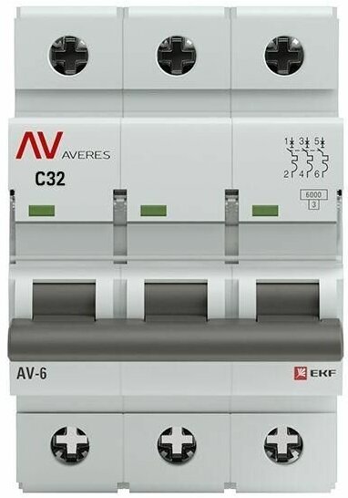 mcb6-3-32C-av Выключатель автоматический AV-6 3P 32A (C) 6kA AVERES EKF