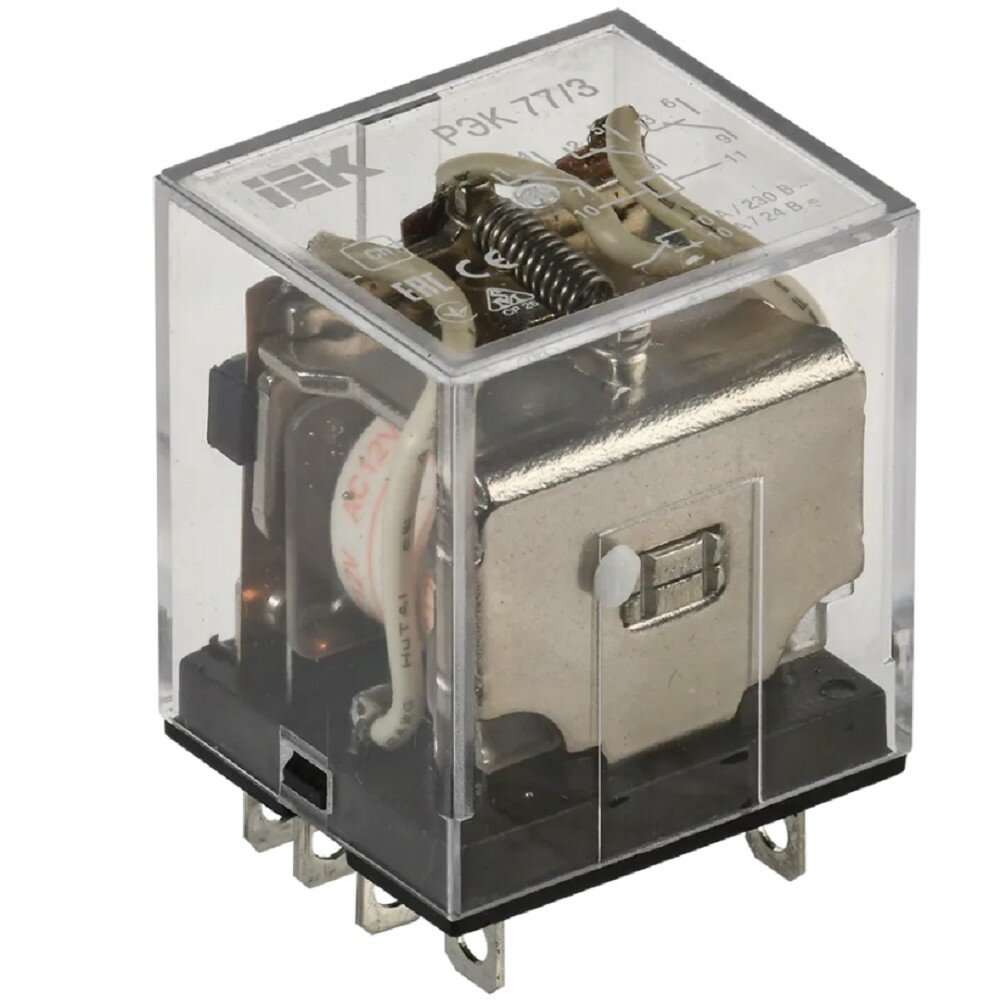 Реле промежуточные IEK модульной серии РЭК77 предназначены для передачи команд управления исполнительными элементами путем коммутации их электрических цепей своими переключающими контактами. Реле соединяются с розеточными модульными разъемами РРМ77, устанавливаемыми на 35-мм монтажной DIN-рейке. На разъемах расположены зажимы выводов переключающих контактов и катушки. В реле применяются серебросодержащие контакты. Уменьшенные габариты реле серии РЭК предоставляют возможность более рационального размещения изделий на монтажных плоскостях. Срок службы: не менее 10 лет Гарантия: 3 года Руководство по эусплуатации