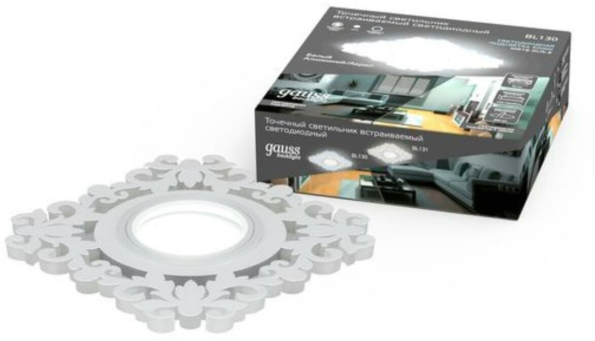 Встраиваемый светильник светодиодный Backlight BL130 - продукт известной компании Gauss (Россия). Имеет максимальную мощность 3 Вт, освещает площадь до 0.6 кв. м. Отлично подойдет для таких мест, как гостиная, спальня. Впишется в интерьеры следующих стилей: модерн.