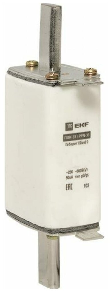 ОПИСАНИЕ. Предохранители плавкие ППН EKF PROxima предназначаются для защиты кабельных линий и промышленных электроустановок от токов перегрузки и короткого замыкания. Предохранители применяются в электрических сетях переменного тока частотой 50 Гц с напряжением до 660 В и устанавливаются в низковольтные комплектные устройства, например, в распределительные панели ЩО-70, вводно-распределительные устройства ВРУ1, шкафы распределительные силовые ШРС1 и т. п. ПРЕИМУЩЕСТВА. Корпус предохранителя изготовлен из керамики. Широкий нож большая площадь контакта. Габаритные размеры предохранителей на ~15% меньше предохранителей ПН-2. Наличие индикатора срабатывания. Корпус предохранителей засыпан мелкодисперсным кварцевым песком. Плоская контактная пластина у держателя плавких вставок большая площадь контакта. Повышенный уровень теплорассеивания за счет массивных ножей предохранителя. Предохранители монтируются и демонтируются с помощью универсального съемника. Широкая медная пластина плавкая вставка EKF соответствует номинальному току. ПРИМЕНЕНИЕ. Предохранители плавкие предназначены для защиты кабельных линий и промышленных электроустановок от токов перегрузки и короткого замыкания. Используются: в распределительных панелях ЩО-70; вводно-распределительных устройствах ВРУ; шкафах распределительных силовых ШРС.