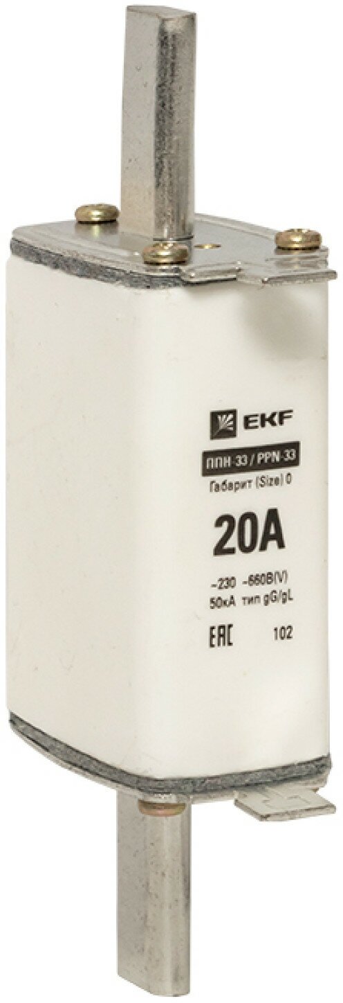 ОПИСАНИЕ. Предохранители плавкие ППН EKF PROxima предназначаются для защиты кабельных линий и промышленных электроустановок от токов перегрузки и короткого замыкания. Предохранители применяются в электрических сетях переменного тока частотой 50 Гц с напряжением до 660 В и устанавливаются в низковольтные комплектные устройства, например, в распределительные панели ЩО-70, вводно-распределительные устройства ВРУ1, шкафы распределительные силовые ШРС1 и т. п. ПРЕИМУЩЕСТВА. Корпус предохранителя изготовлен из керамики. Широкий нож большая площадь контакта. Габаритные размеры предохранителей на ~15% меньше предохранителей ПН-2. Наличие индикатора срабатывания. Корпус предохранителей засыпан мелкодисперсным кварцевым песком. Плоская контактная пластина у держателя плавких вставок большая площадь контакта. Повышенный уровень теплорассеивания за счет массивных ножей предохранителя. Предохранители монтируются и демонтируются с помощью универсального съемника. Широкая медная пластина плавкая вставка EKF соответствует номинальному току. ПРИМЕНЕНИЕ. Предохранители плавкие предназначены для защиты кабельных линий и промышленных электроустановок от токов перегрузки и короткого замыкания. Используются: в распределительных панелях ЩО-70; вводно-распределительных устройствах ВРУ; шкафах распределительных силовых ШРС.