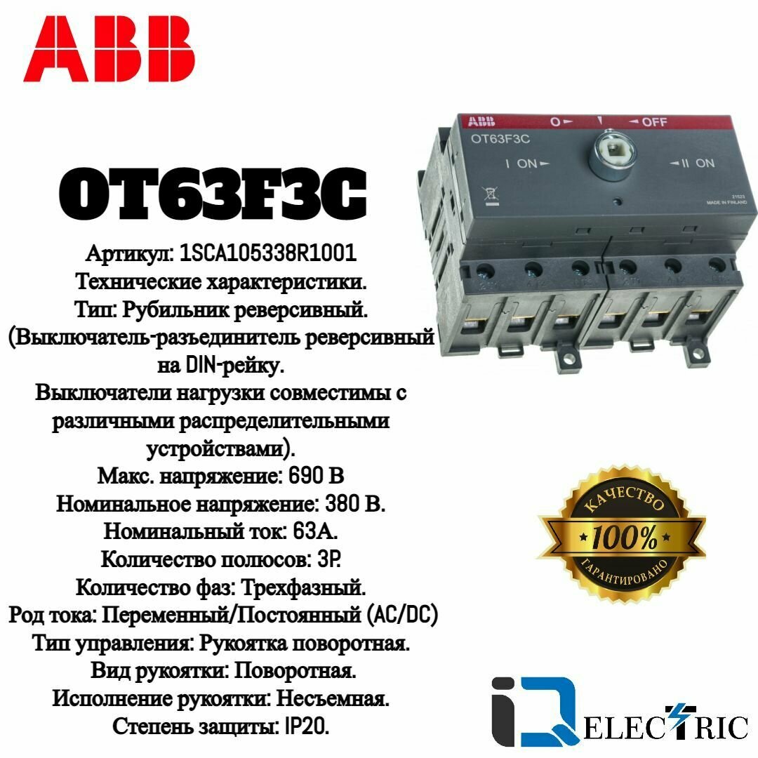 На сегодняшний день товар «1SCA105338R1001 Реверсивный рубильник OT63F3C до 63А 3-полюсный для установки на DIN-рейку или монтажную плату (без ручки) ABB» можно купить с кешбеком в 1 магазине: Яндекс.Маркет