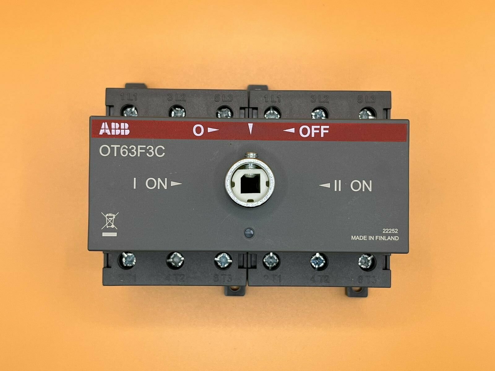 1SCA105338R1001 Реверсивный рубильник OT63F3C до 63А 3-полюсный для установки на DIN-рейку или монтажную плату (без ручки) ABB