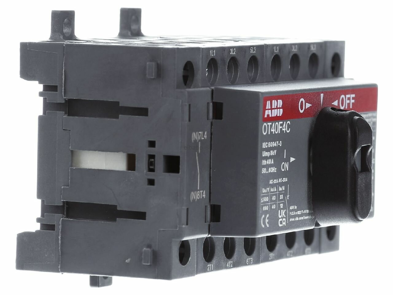 1SCA104934R1001 Реверсивный рубильник OT40F4C до 40A 4х-полюсный для установки на DIN-рейку или монтажную плату (с резерв. ручкой) ABB