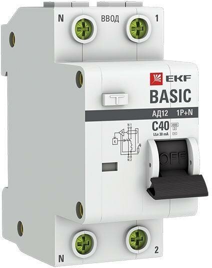 DA12-40-30-bas Дифференциальный автомат 1P+N 40А 30мА тип АС х-ка C эл. 45кА АД-12 Basic EKF