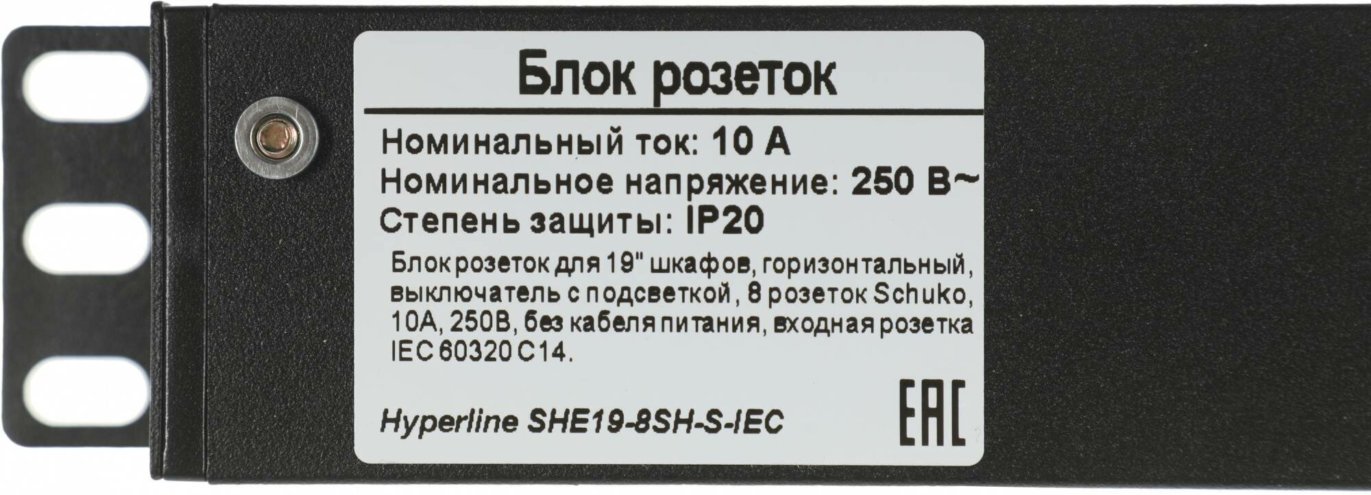 На сегодняшний день товар «Schuko Блок розеток 19 250В 1U 10А 8 розеток с выключателем разъем IEC 60320 C14 алюминиевый корпус Hyperline SHE19-8SH-S-IEC» можно купить с кешбеком в 1 магазине: Яндекс.Маркет