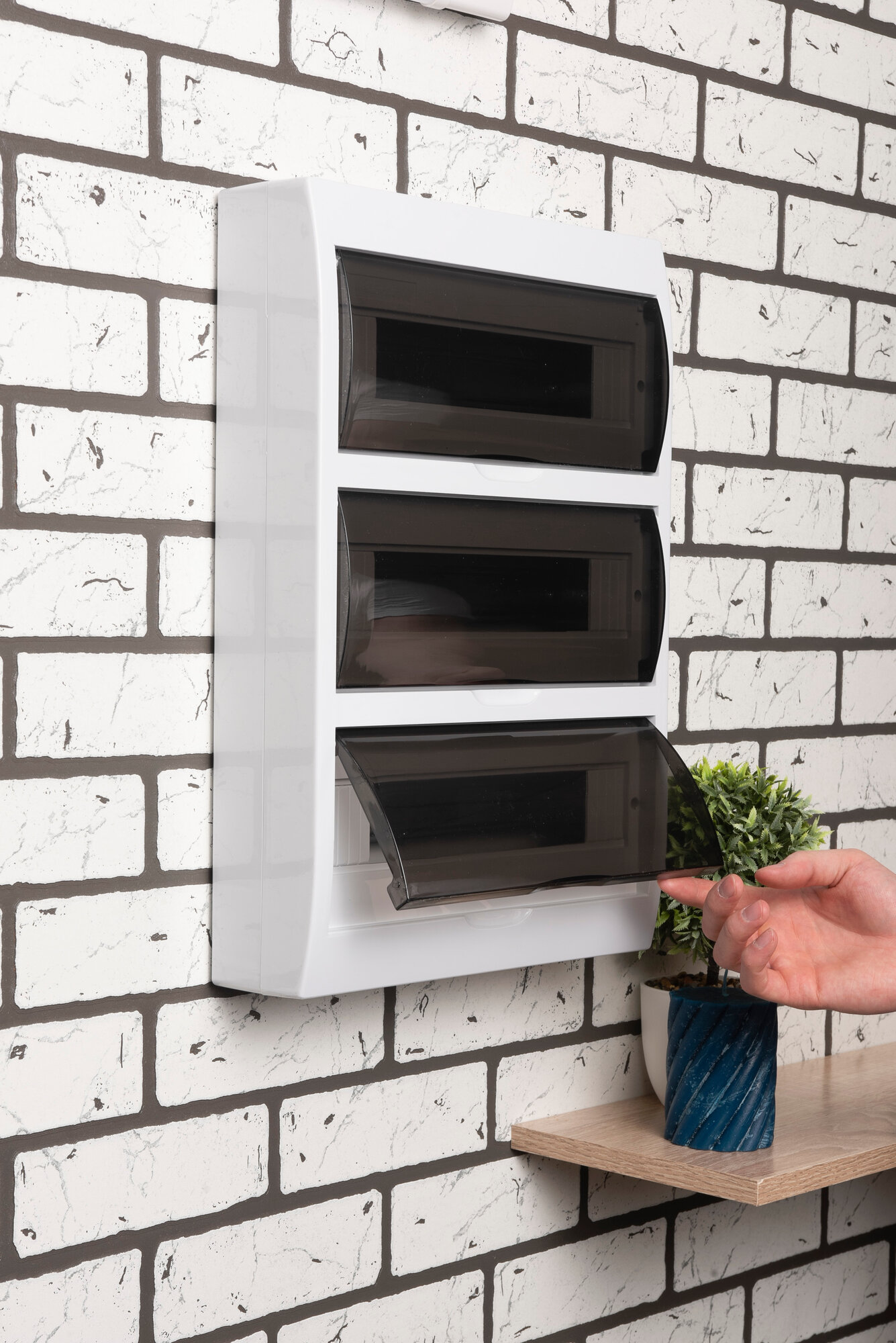 Щиты распределительные пластиковые ЩРн-П, ЩРв-П EKF PROxima предназначены для установки модульной аппаратуры: автоматических выключателей, УЗО, таймеров, устройств управления и т.д. Используются для электромонтажа в жилых, административных, торговых помещениях. Вертикальное открывание дверцы позволяет устанавливать бокс независимо от положения соседних стен. Электрощиты изготовлены из прочного ABS-пластика. ПРЕИМУЩЕСТВА. Вертикальная дверца - монтаж независимо от положения соседних стен. Выштампованные кабельные вводы. Большой выбор типоразмеров и комплектаций щитов. Шины N и PE в комплекте. ПРИМЕНЕНИЕ. Применяются в сферах производства и промышленности, а также в гражданском строительстве: в административных помещениях, офисно-торговых помещениях, частных жилых домах, гаражных кооперативах. Предназначены для: дальнейшей сборки щитов распределения электроэнергии; защиты сетей от токов перегрузки и короткого замыкания; установки различного модульного оборудования.