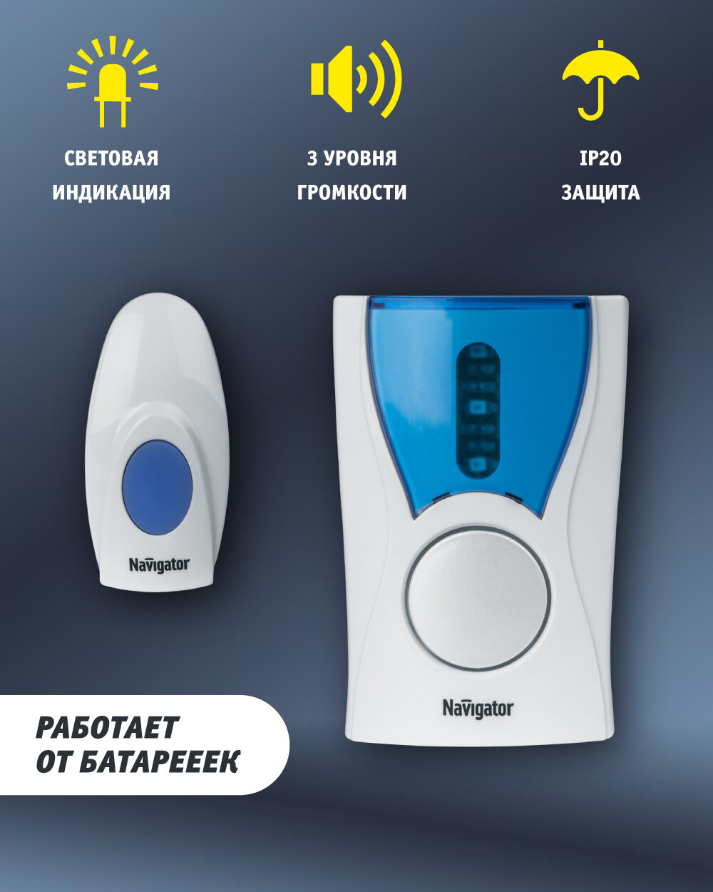 Сервис сравнения цен СкидкаГИД предлагает сравнить цены на товар «61268 Звонок электрический 61 268 NDB-A-DC02-1V1-WH Navigator»