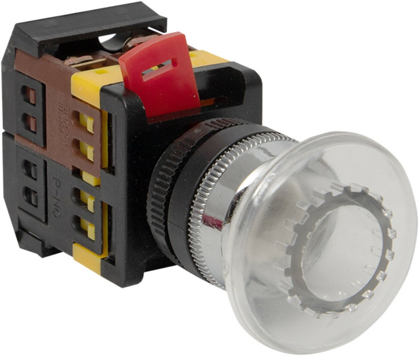 ОПИСАНИЕ. Кнопки типа "Грибок" применяются в электрических цепях переменного тока частотой 50/60 Гц с напряжением до 660 В и постоянным напряжением до 400 В. Исполнение такого типа ( активная часть выступает) позволяет простым нажатием быстро подать управляющий сигнал на оборудование. Включение кнопки облегчается за счет большой площади поверхности нажатия. ПРЕИМУЩЕСТВА. Возможность использования дополнительных размыкающих и замыкающих контактов. Быстрая и удобная замена лампы подсветки. Широкий ассортимент кнопок различного количества и типа контактов, различных цветов и фиксаций. Легкий монтаж/демонтаж дополнительных контактов. ПРИМЕНЕНИЕ. Кнопки типа "Грибок" применяются в постах кнопочных, вводно-распределительных устройствах, устройствах автоматического включения резерва, станциях управления электрическими приводами и т. п.