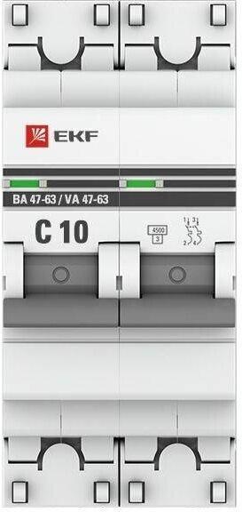 mcb4763-2-10C-pro Выключатель автоматический модульный 2п C 10А 4.5кА ВА 47-63 PROxima EKF
