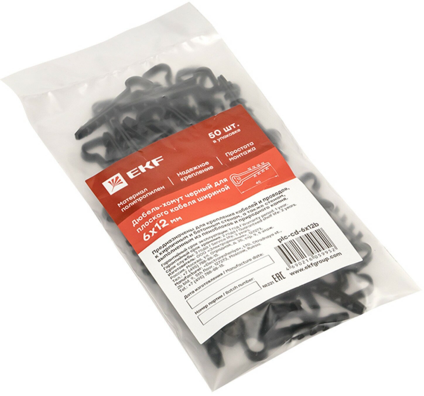 plc-cd-6x12b Дюбель-хомут d6х12мм полипропилен черн. (уп.50шт) EKF
