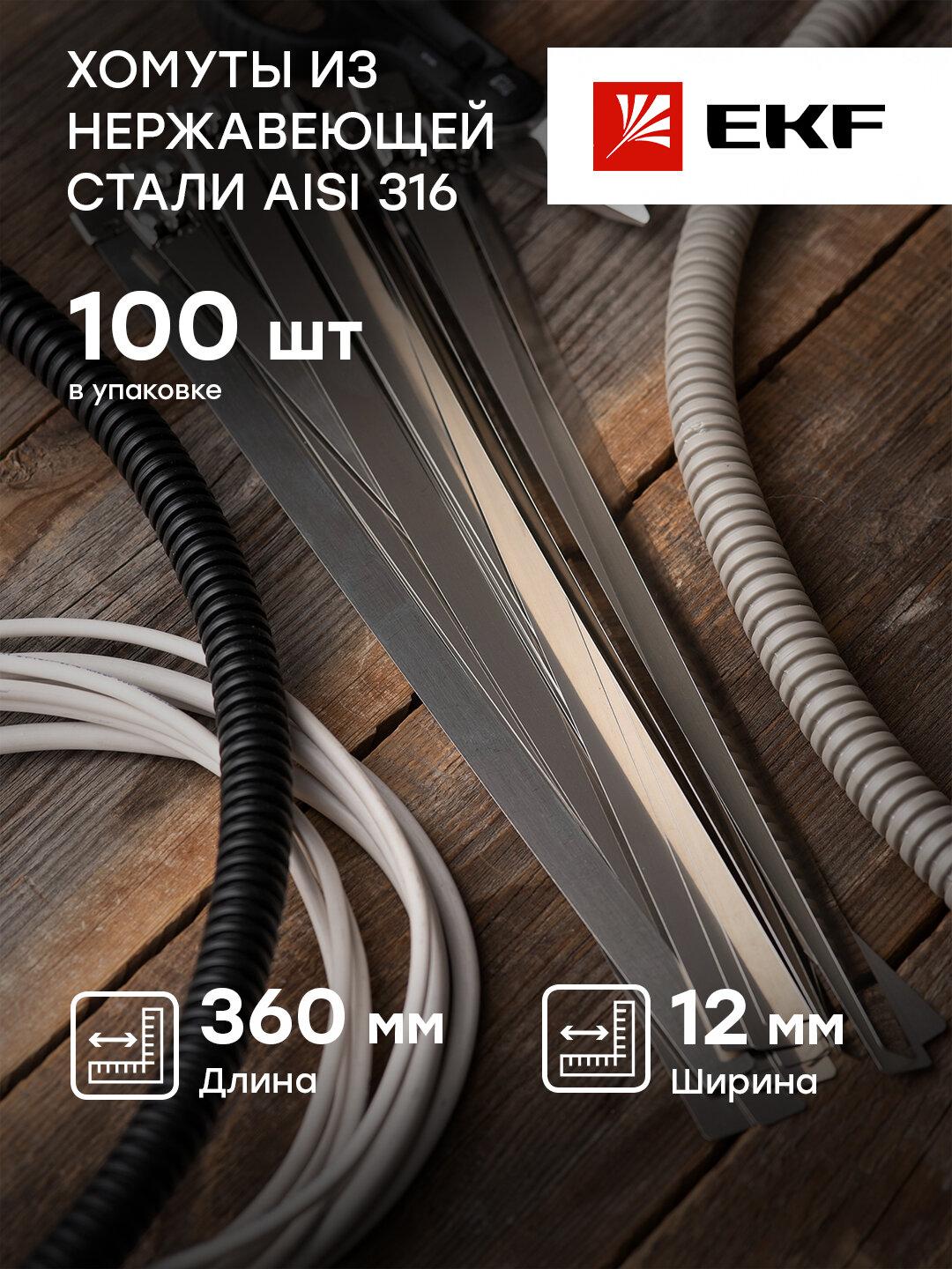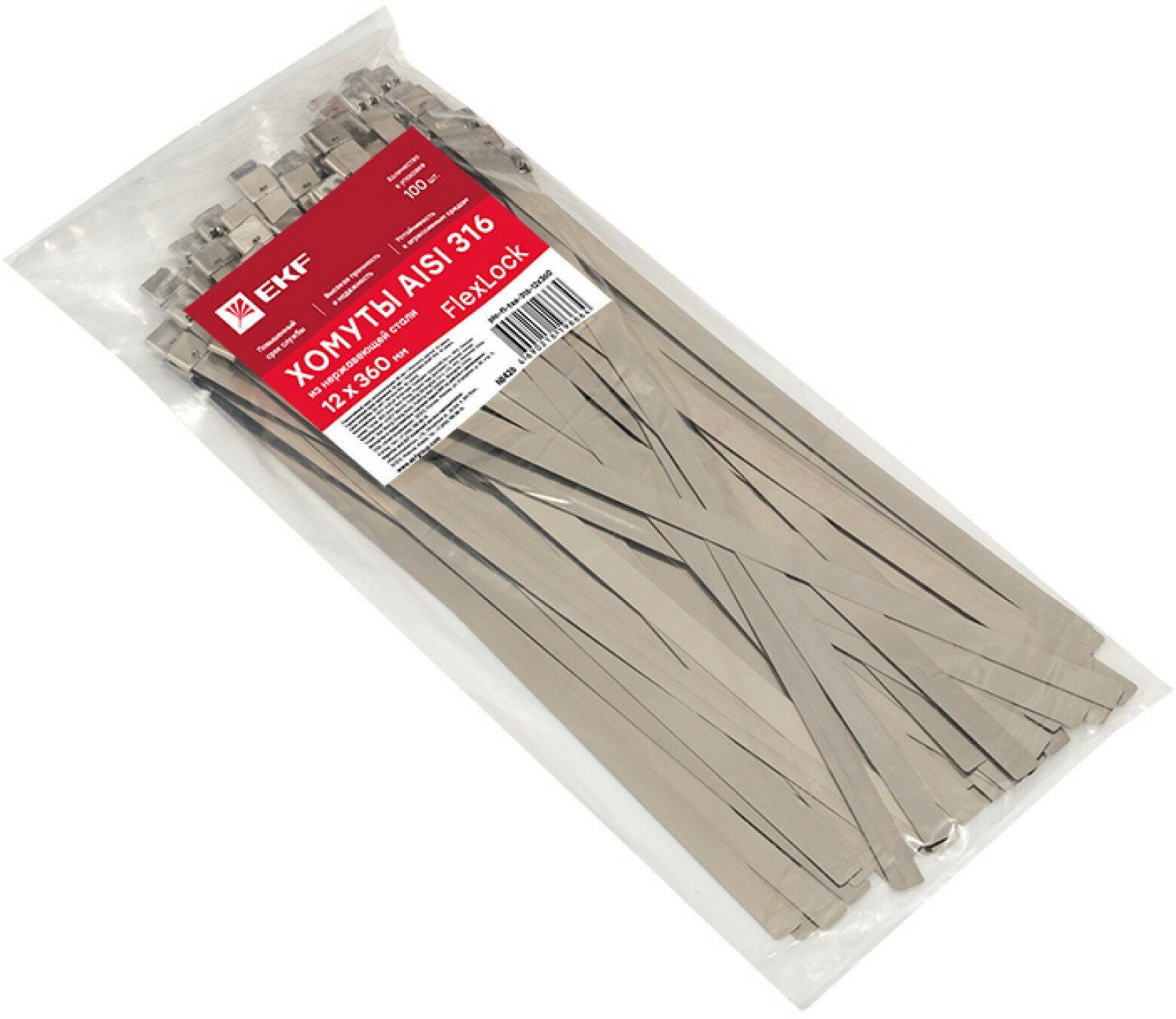 plc-fl-tss-316-12x360 Хомут AISI 316 из нержавеющей стали 12x360 (100 шт.) FlexLock PROxima EKF