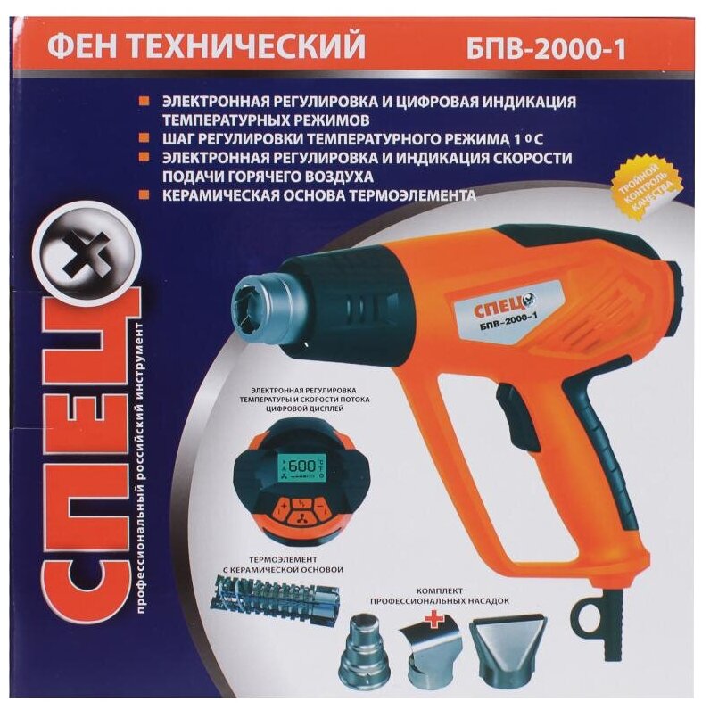 - Строительный фен с электронной регулировкой. Спец БПВ - 2000 -1.