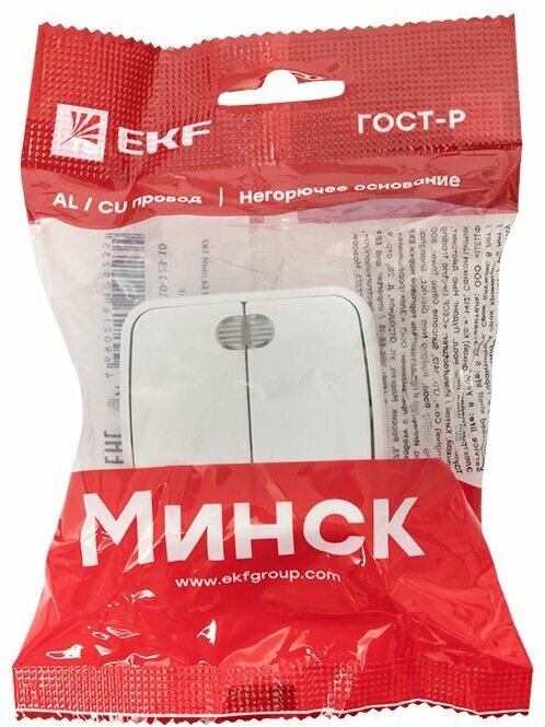 EGV10-123-10 Минск Выключатель 2-клавишный ОП 10А с индикатором белый Basic EKF Минск ОП Basic