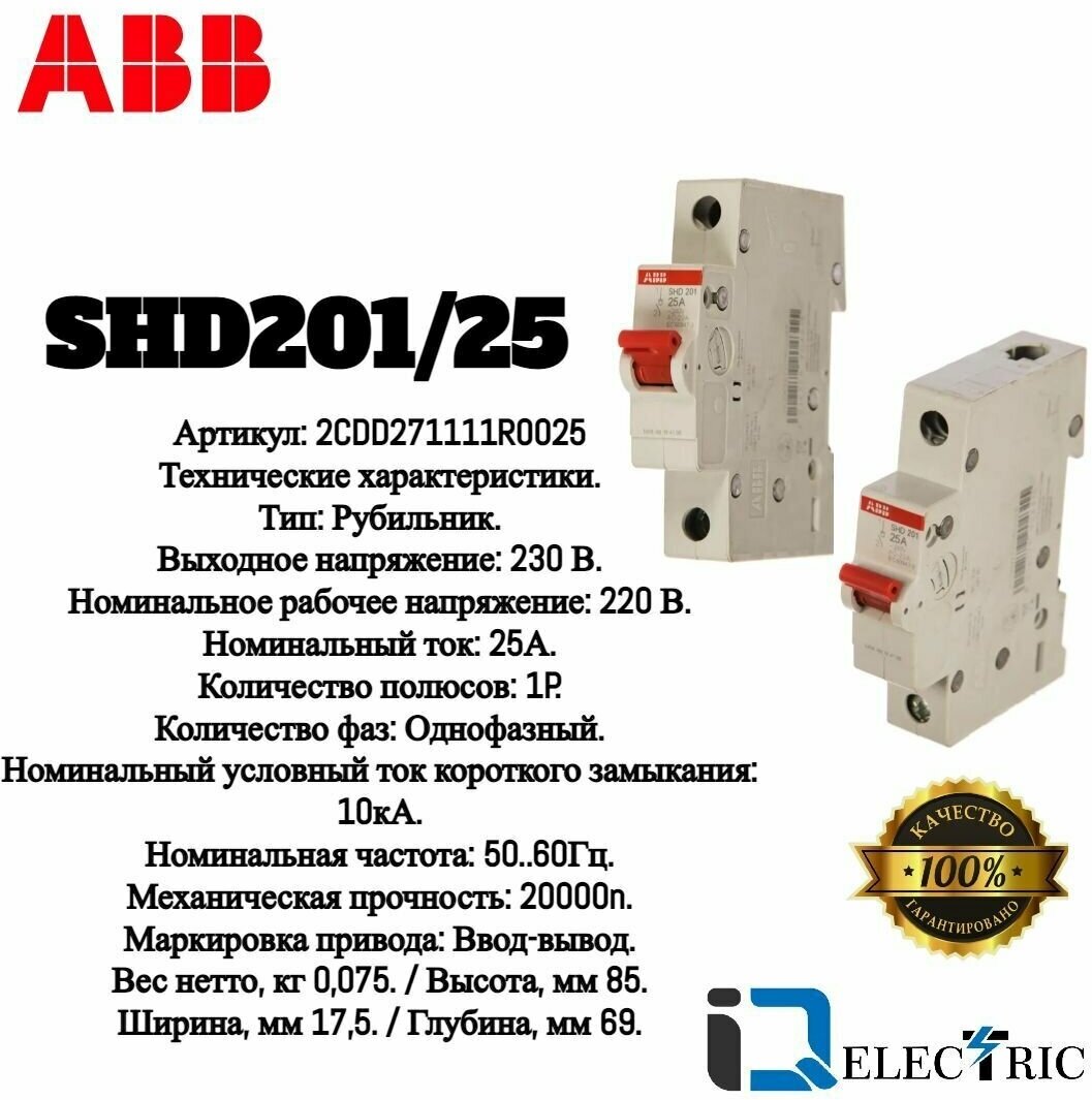 2CDD271111R0025 Рубильник 1пол. SHD201/25 рычаг крас. ABB