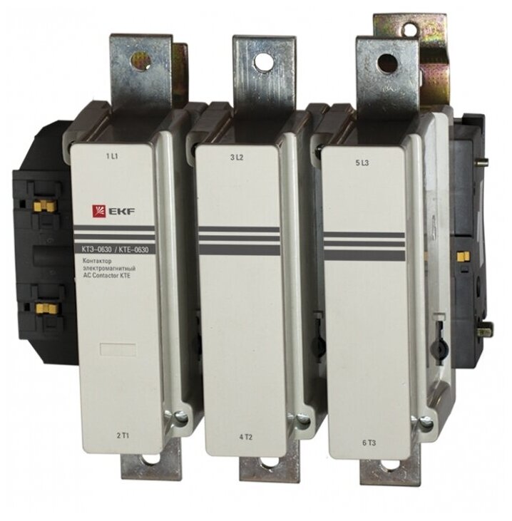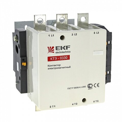 ОПИСАНИЕ. Контакторы КТЭ EKF PROxima состоят из корпуса, закрепленных в нем неподвижных контактов, подвижных контактов, которые закреплены в подвижной части магнитной системы. Неподвижная часть магнитной системы закреплена жестко в корпусе КTЭ. Пружина препятствует смыканию контактов. При подаче напряжения на катушку управления в магнитной системе контактора возникает магнитное поле, которое, преодолевая сопротивление пружины, смыкает магнитную систему и замыкает контакты. При отключении напряжения с катушки управления пружина размыкает контакты. Реверсивная схема КТЭ EKF PROxima представляет собой два контактора КТЭ EKF PROxima, смонтированных на двух направляющих, между контакторами расположена механическая блокировка, препятствующая одновременному включению двух контакторов. Клеммы контакторов соединены соответствующими шинами. Контактор серии КТЭ EKF PROxima награжден медалью международной выставки «Электро-2008» в номинации «Лучшее электрооборудование». ПРЕИМУЩЕСТВА. Реверсивная схема уже в сборе. Повышенное быстродействие – увеличение срока службы. Меньшее переходное сопротивление, уменьшенные тепловые потери на полюсе – увеличенный срок службы. Рекомендуем использовать электронное реле защиты двигателя МРТ. Собственный участок сборки позволяет максимально быстро поставить нужную катушку для клиента. Возможность установки двух дополнительных устройств. Высокая коммутационная износостойкость – главные контакты из тугоплавкого композита с серебром. Широкий ассортимент номинальных токов. Тепловые реле до 200 А. Мостиковый контакт. Быстрое гашение дуги. Простота замены катушки управления. ПРИМЕНЕНИЕ. Промышленность: Включение/отключение технологических машин и оборудования, в том числе высокодискретных автоматических линий, решения для управления и автоматизации. Управление подъемными механизмами. Включение/отключение освещения: производственного, уличного, офисного, коммерческих объектов. Коммутация различных механизмов в сфере ЖКХ, коммерческой недвижимости и производственных помещениях (насосные станции, станции управления электродвигателями, вентиляция, автоматические ворота и двери), ВРУ.