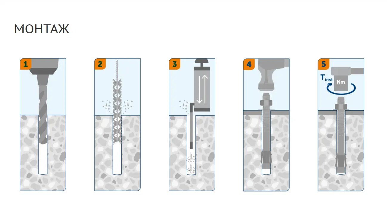 Клиновой анкер высшего качества c контролируемым моментом затяжки для предустановки, сквозного и дистанционного монтажа (анкер заранее собран и готов к прямому сквозному монтажу). Применяется для крепления стальных конструкций, фасадных каркасов, опорных плит, сидений, лестниц, ограждений и перил к таким основаниям, как растянутая и сжатая зона бетона, природный камень, полнотелый глиняный кирпич. Может использоваться для сухих помещений и временных креплений на улице. Использование установочного инструмента делает монтаж S-KA более быстрым и безопасным.