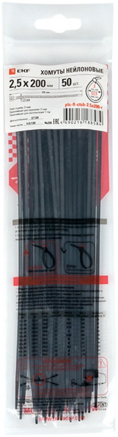 plc-fl-ctsb-2.5x200-r Хомут P6.6 стандартный (ч) 2.5x200 (50шт) FlexLock PROxima EKF
