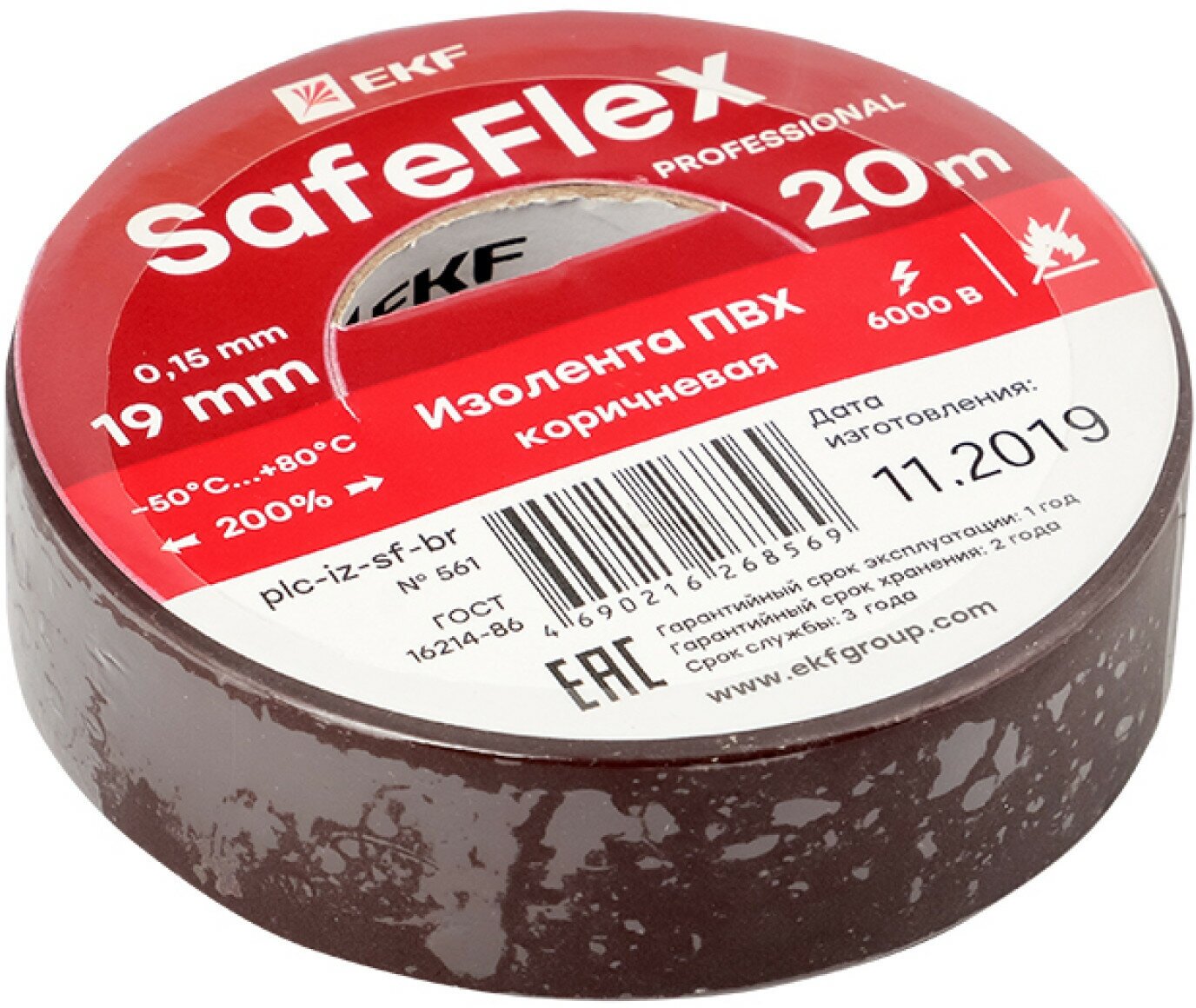 ОПИСАНИЕ. Изолента из ПВХ SafeFlex отличается высокой прочностью, эластичностью и клейкостью.SafeFlex – это три вида изоленты, у каждой из которых есть свои особенности. Для универсального использования подойдет SafeFlex стандартная, для работы в ограниченном пространстве – SafeFlex Auto, для самых сложных условий – SafeFlex Pro 33+. ПРЕИМУЩЕСТВА. 1. SafeFlex – изолента с шириной пленки 19 мм и длиной рулона 20 м. Все ленты SafeFlex обладают высокими адгезионными свойствами, благодаря которым обеспечивается хорошая клейкостью. 2. Все ленты SafeFlex обладают высокой клейкостью – адгезией. В основе новой изоленты – липкий слой из каучукового состава толщиной 15 микрон. Его преимущество в том, что адгезионная связь максимальной силы возникает практически моментально. 3. По ряду основных параметров SafeFlex превосходит требования ГОСТ. Так, она сохранит свои свойства при температуре от -50°С до +80°С (на 10°С выше, чем по стандарту). Относительное удлинение при разрыве составляет 200% (на 10% больше, чем по ГОСТ). 4. Прочная изолента устойчива к истиранию, воздействию влаги, коррозии металлов и ультрафиолетовому излучению. ПВХ, из которого изготовлен SafeFlex, обладает свойствами самозатухания и нераспространения горения. 5. SafeFlex Auto – мини-ролик изоленты шириной 15 мм и длиной 5 м – значительно меньше чем у стандартной изоленты. Диаметр ролика – 42 мм. Такой размер гораздо удобнее при электромонтажных работах в ограниченном пространстве, например в автомобиле. SafeFlex Auto обладает теми же параметрами клейкости и надежности, что и стандартная изолента SafeFlex. 6. SafeFlex Pro 33+ – изолента высшего класса с улучшенными характеристиками. Она станет необходимым подручным средством при работе в сложных условиях. SafeFlex Pro 33+ сохраняет свои свойства даже при химическом воздействии. Использовать ее можно в увеличенном диапазоне температур: от -45°С до +105°С. Клейкая пленка на эластичной подложке обеспечивает влагонепроницаемую электрическую и механическую защиту при минимальном объеме намотки. СВОЙСТВА. Высокая адгезия. Напряжение на пробой 6000В. Относительное удлинение при разрыве составляет 200% (на 10% больше, чем по ГОСТ). Не поддерживает горение. Температура эксплуатации на 10°С выше, чем по стандарту. ПРИМЕНЕНИЕ. Используйте изоленту SafeFlex для работы с проводниками: для их электроизоляции, сращивания и жгутирования, защиты от повреждений и маркировки.