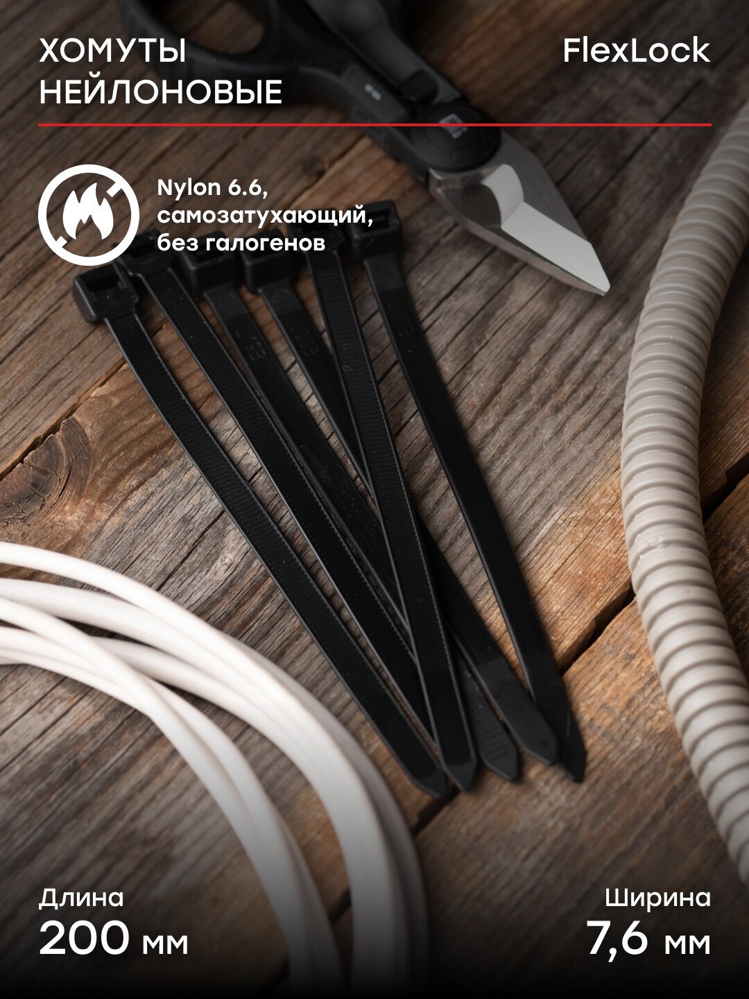 plc-fl-ctsb-7.6x200 Хомут P6.6 стандартный (ч) 7.6x200 (100шт) FlexLock PROxima EKF