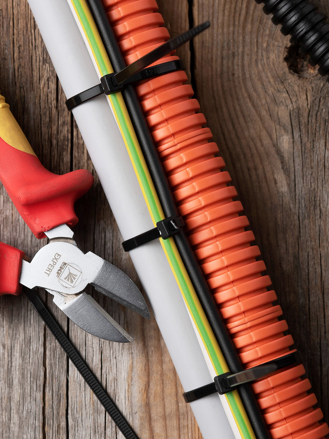 Хомуты FlexLock EKF PROxima предназначены для увязки кабелей и проводов в пучок и монтажа кабельных линий и проводников. Изготовлены из полиамида 6.6, который обладает хорошей устойчивостью к маслам, смазкам, масляным производным, хлоридным растворителям,устойчивостью к слабым кислотам и УФ-лучам. Кабельные стяжки серии FlexLock имеют самофиксирующийся ремешок с блокирующим механизмом. При производстве кабельных стяжекчерного цвета добавляется угольный порошок, который является одним из наиболее эффективных стабилизаторов. Он улучшает физические свойства продукции в стойкости к погоднымусловиям и УФ-излучению (прямые солнечные лучи). Наборы хомутов в банках представляютсобой кабельные стяжки наиболее распространенных габаритов и разных цветов, собранныев одной пластиковой упаковке. Благодаря прозрачной пластиковой упаковке такие наборы легкотранспортировать и легко идентифицировать, какой цвет и габарит хомута находится в упаковке.Разные цвета очень удобны в применении в быту и для маркировки.