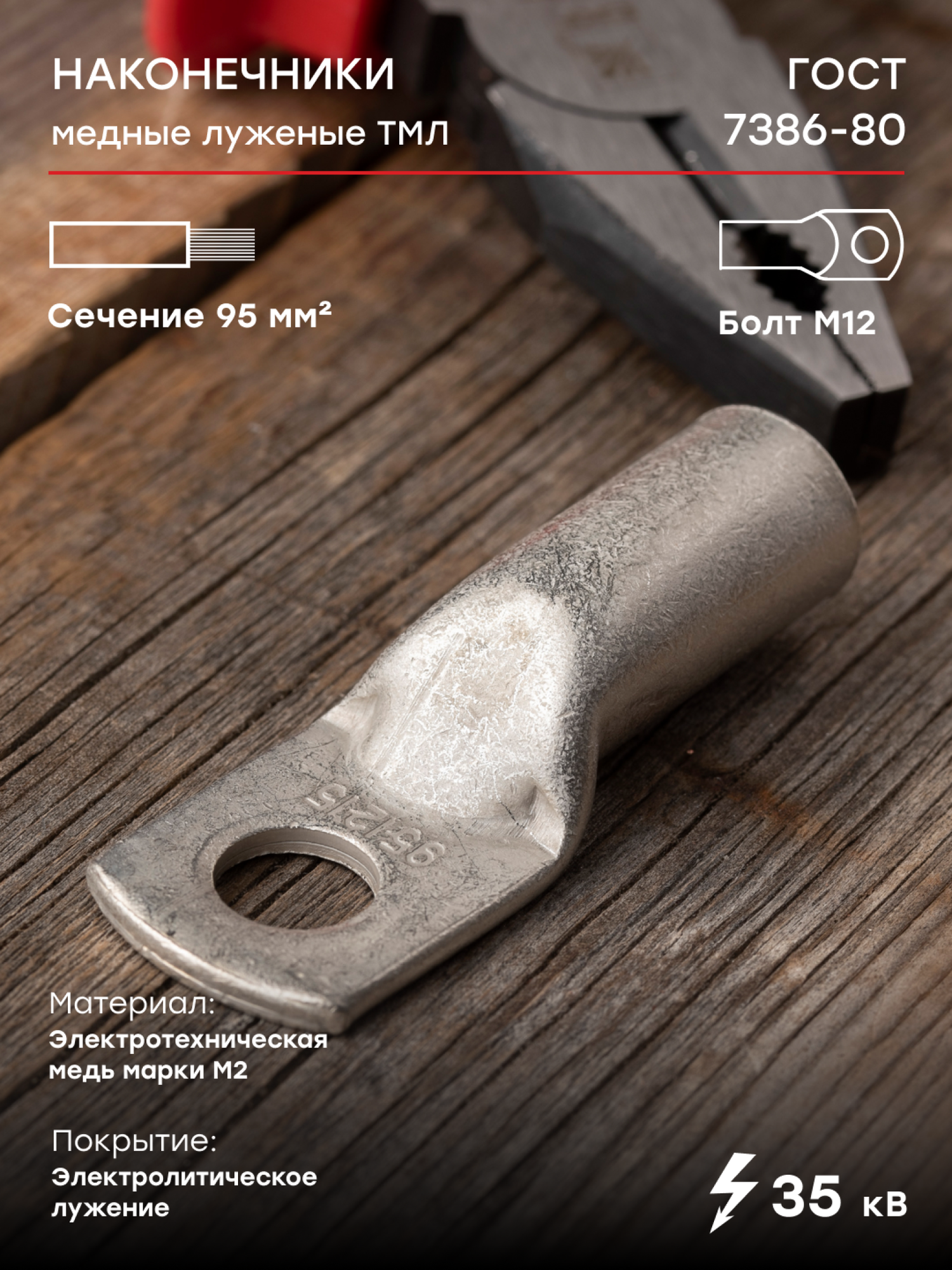 tml-95-12-15-g Наконечник медный луженый ТМЛ 95-12-15 PROxima Упаковка (25 шт.) EKF PROxima ТМЛ 95-12-15