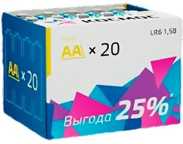 Космос Батарейка щелочная АА (LR6) 20 шт. Алкалиновые (щелочные) батарейки. Тип АА/LR6 (пальчиковый). Универсальные батарейки для длительной работы. В упаковке 20 батареек.