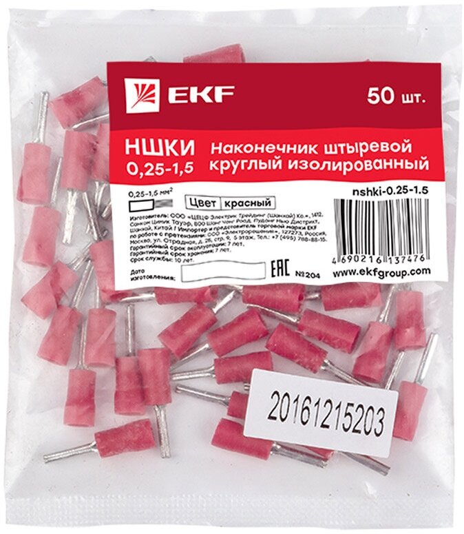 nshki-0.25-1.5 Наконечник штыревой круглый изолированный НШКИ 0.25-1.5 (уп 50шт) PROxima EKF
