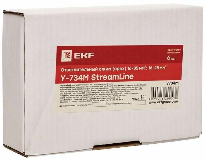 y734m Ответвительный сжим (орех) У-734М (16-35 мм2; 16-25 мм2) StreamLine Упаковка (6 шт.) EKF