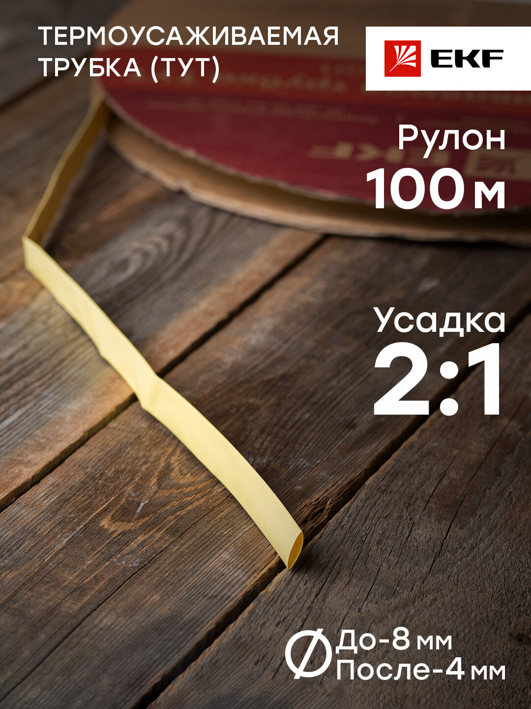 tut-8-y Термоусаживаемая трубка ТУТ 8/4 желтая рулон PROxima Упаковка (100 шт.) EKF