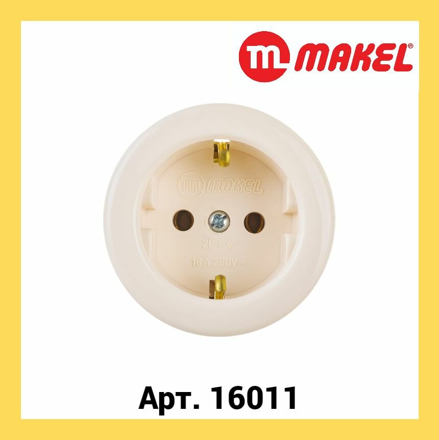 Розетка Makel 16011 Оу 1 Мест. Крем. (Кругл., Земля) — это устройство, которое позволяет подключить электроприборы к сети.