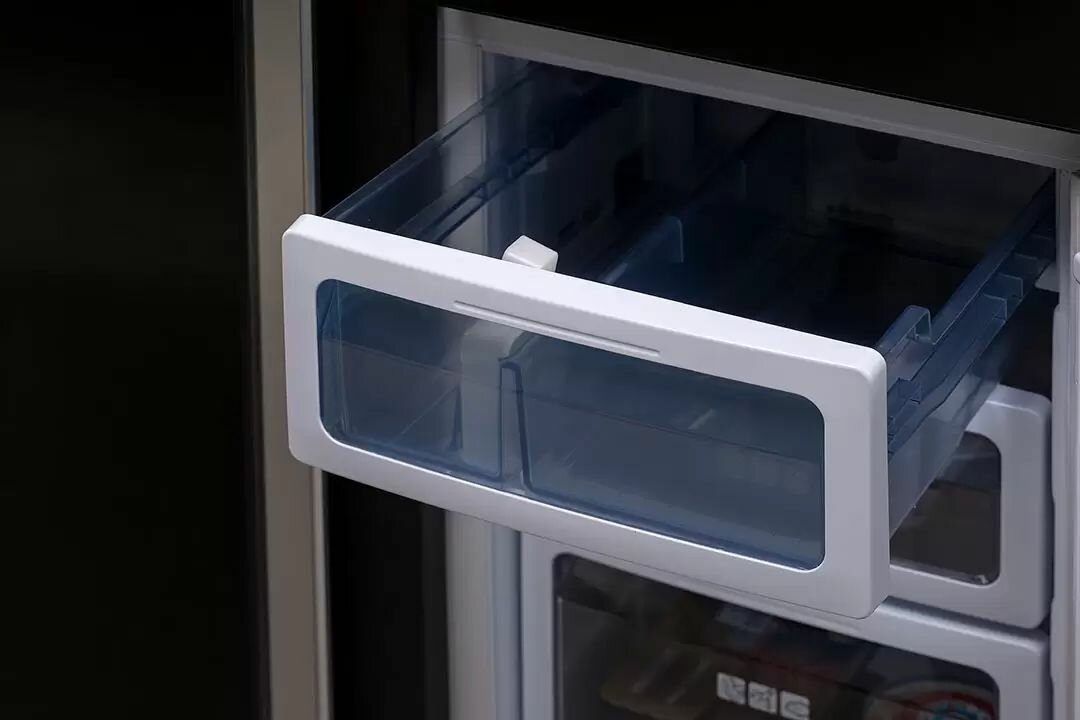 Особой похвалы заслуживает ледогенератор - его не надо подключать к домовому водоснабжению! Вода заливается в контейнер внутри холодильника. Есть несколько режимов и размеров льда. Контейнер для льда большой, на вечеринку с коктейлями льда хватает :-)