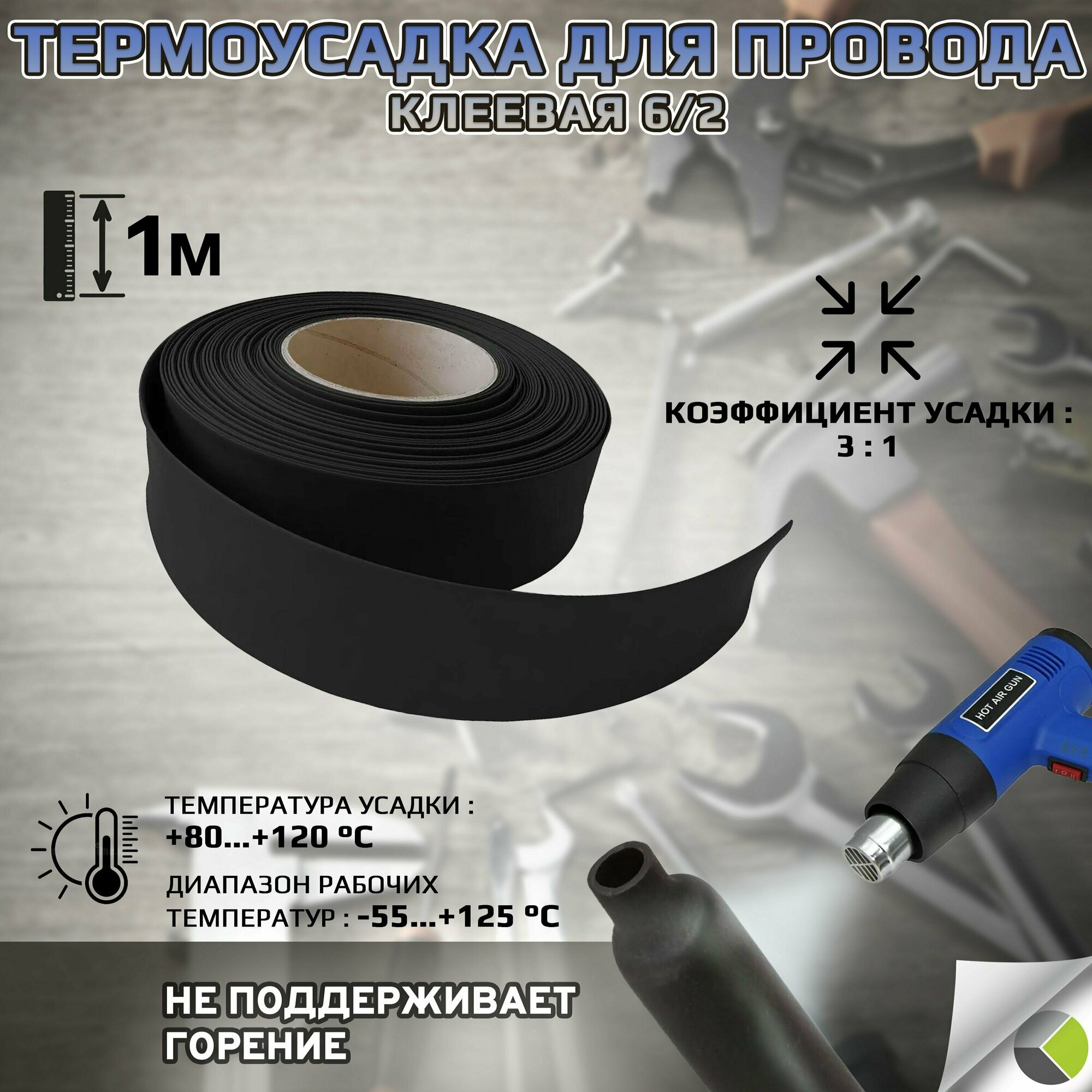 20-6008 Трубка термоусадочная 6.0/2.0 1м с клеев. подсл. черн. Rexant