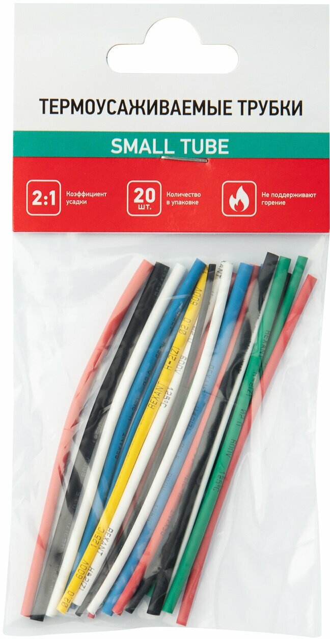 Набор трубок термоусадочных тонкостен. №4 (рыболов) разноцвет. Rexant 29-0104Термоусаживаемые трубки SMALL TUBE 2:1 REхANT специально подобраны для удобства использования рыболовами, а так же при соединении и изоляции предметов с минимальным диаметром, также Назначение: для восстановления и создания изоляции, герметизации любых соединений, а так же для маркировки и создания защиты от коррозии и механических повреждений. Состав набора: 1мм – 5шт(черный, белый, красный, синий, зеленый) 1,5мм – 5шт(черный, белый, красный, синий, зеленый) 2мм – 6шт(черный, белый, красный, синий, зеленый, желтый) 2,5мм – 4шт.(черный, белый, красный, синий) 1. Длина: 10 см. 2. Коэффициент усадки 2:1. 3. Температура усадки: +90°C…+125°C 4. Рабочая температура: -55°…+135°C 5. Не содержет галогенов 6. Нетоксично Отличается высокой гибкостью; материал(полиолефин), из которого изготовлена трубка, экологически безопасен. Уникальным свойством термоусаживаемых трубок является их способность менять свой диаметр, сжиматься в результате нагрева и принимать форму предмета или материала, на который совершается усадка, для этого достаточно нагреть трубку до необходимой температуры, а потом дать остыть. Трубка имеет свойство подавления горения, то есть она неспособна поддерживать горение, в отсутствии открытого огня затухает самостоятельно и неспособна воспламеняться. Рекомендуется проведение работ по усадке трубок с помощью специальных электромонтажных фенов и газовых горелок REхANT.