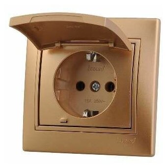 Розетка 1-м СП Мира с защ. крышкой керам. с заземл. метал. зол. 701-1313-123 LEZARD 701-1313-123 Mira