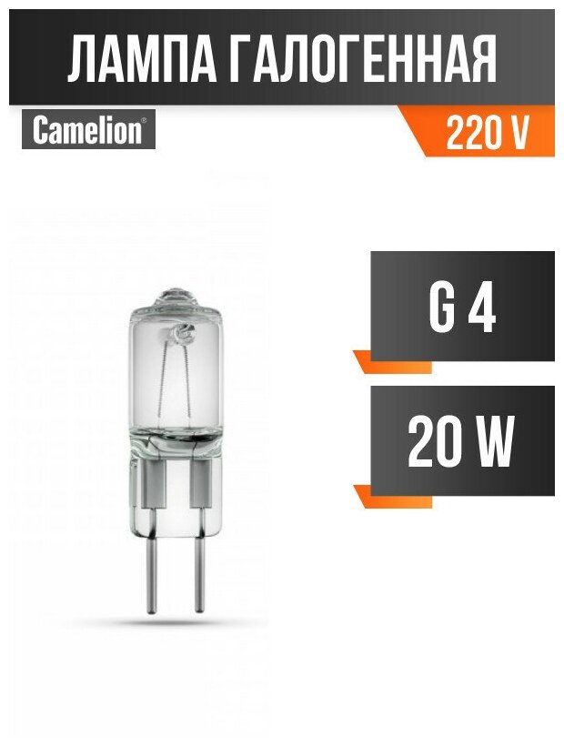 10405 Лампа галогенная JD 20Вт капсула g4 2850К 240В g4 Camelion JD 20W g4 220V