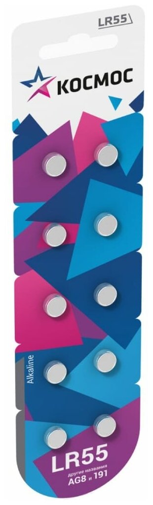 Элемент питания алкалиновый "таблетка" AG8 LR55 (блист.10шт) KOCG8(LR55)10BL КОСМОС