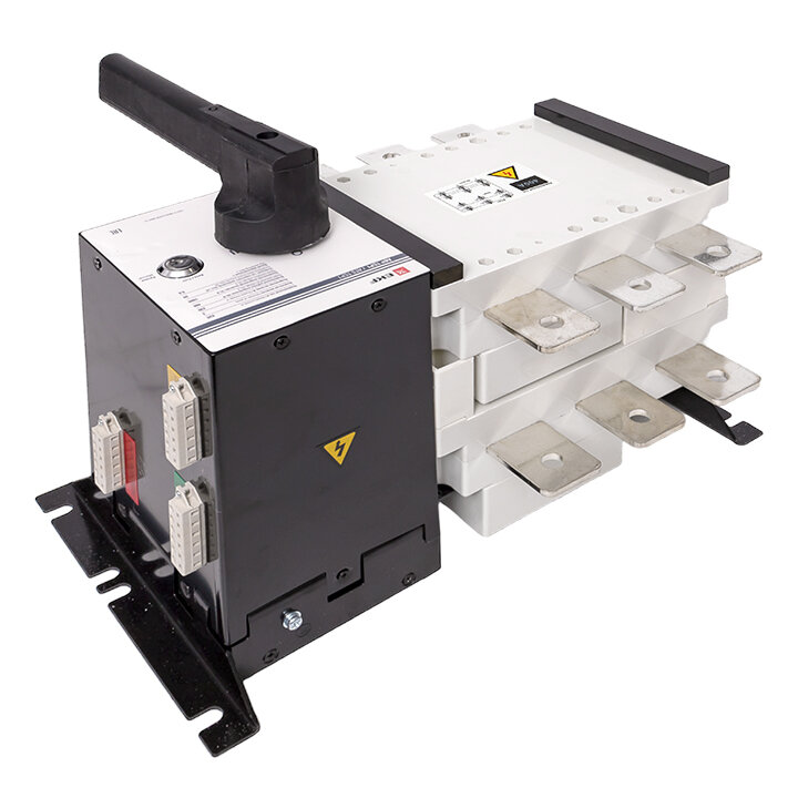 ОПИСАНИЕ. Устройство АВР ТСP1 EKF PROxima предназначено для обеспечения резервным электроснабжением нагрузки, подключенной к системе электроснабжения, имеющей основной и резервный вводы. Устройство АВР автоматически подключает резервную линию питания в случае пропадания напряжения на основной линии. Конструкция и принцип действия: Устройство АВР ТСP1 EKF PROxima выполнено в виде моноблока и состоит из контактного блока и блока управления. На блоке управления имеется рычаг ручного переключения, замковый механизм перевода в ручной или автоматический режимы управления и запорный механизм, обеспечивающий блокировку переключения устройства АВР. Корпус контактного блока выполнен из термостойкой АВС пластмассы. Механизм переключения обеспечивает перемещение контактных групп мостикового типа, которые замыкают цепи или основной линии, или резервной линии, также предусмотрено положение, когда обе линии отключены. В металлическом корпусе блока управления смонтирован электромотор приводной механизм и реле управления. Реле управления запитано от линии L3 основного ввода. При наличии напряжения на линии L3 основного ввода реле управления подает напряжение на электромотор, который обеспечивает замыкание контактных групп основного ввода и отключается концевым выключателем после замыкания главных контактов. Попытка ручного переключения ввода приведет к включению электромотора управления, который вернет питание от основного ввода. При пропадании напряжения на основном вводе реле управления подаст напряжение от резервного ввода на электромотор управления. Работа устройства АВР от резервного ввода аналогична работе устройства АВР от основного ввода. При появлении напряжения на основном вводе устройство АВР автоматически переключится на основной ввод. ПРЕИМУЩЕСТВА. Ручная блокировка включения. Простое исполнение. Ручной и автоматический режимы. Коммутационный механизм реверсивный рубильник. ПРИМЕНЕНИЕ. Обязательное резервирование нагрузки для потребителей I категории: больницы; крупное металлургическое производство (например, доменная печь, установки непрерывной разливки стали); транспортная инфраструктура; объекты Министерства обороны; тепловые станции; противопожарные системы; сельскохозяйственные фермы.