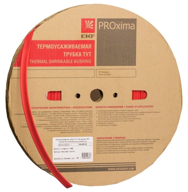 tut-30-r Термоусаживаемая трубка ТУТ 30/15 красная рулон PROxima Упаковка (50 шт.) EKF