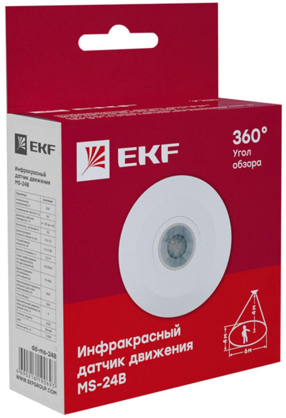 dd-ms-24B Датчик движения ИК (1200 Вт 360 ° дальность 6 м в сборе потолочный IP20 белый) EKF