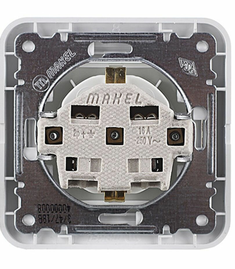Розетка 1-м СП Mimoza с заземл. бел./бел. 12008 Makel
