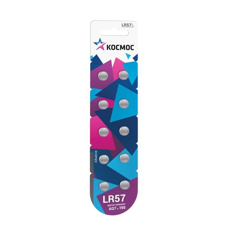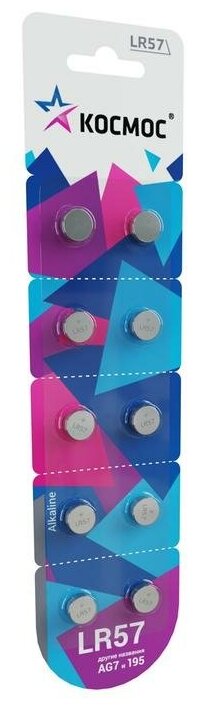 Элемент питания алкалиновый "таблетка" AG7 LR57 (блист.10шт) KOCG7(LR57)10BL КОСМОС KOCG7/LR57/10BL