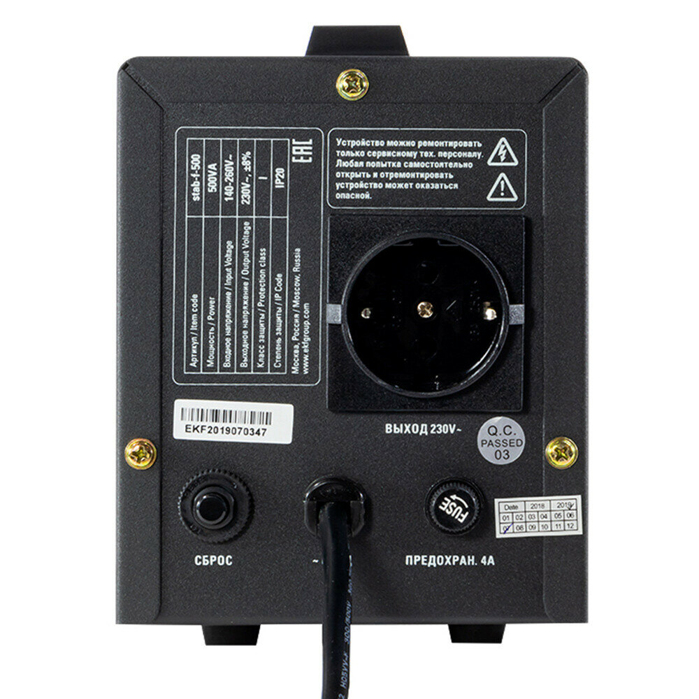 | Прочие особенности и свойства | Стабилизатор переменного напряжения релейного типа предназначен для стабильного питания нагрузок бытового и промышленного назначения 230 В, 50 Гц при отклонениях сетевого напряжения в широких пределах по значению и длительности однофазным напряжением синусоидальной формы, соответствующим требованиям ГОСТ 32144-2013 с фильтрацией сетевых помех и без внесения искажений в его форму. При повышенном или пониженном напряжении устройство выравнивает его, благодаря чему оборудование возможно беспрерывно эксплуатировать, не нанося ему вреда. |