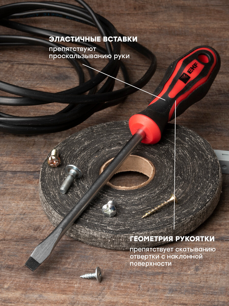ОПИСАНИЕ. Отвертки - это ручной инструмент с широким спектром применения у профессионалов и любителей, предназначенный для завинчивания и отвинчивания крепежных изделий с резьбой. ПРЕИМУЩЕСТВА. Рабочая часть отверток выполнена из Cr-V – хромованадиевой стали, что делает ее устойчивой к механическим повреждениям, температурным воздействиям и образованию коррозии Намагниченный наконечник с дополнительной закалкой HRC 50-55. Высококачественный материал двухкомпонентной рукоятки обеспечивает плотный контакт и минимизирует эффект скольжения. Диаметр и специальная форма рукояток обеспечивают увеличенный крутящий момент при минимальных физических затратах. ПРИМЕНЕНИЕ. • Электромонтажные работы. • Ремонт бытовой техники и компьютеров. • Сборка и разборка мебели. • Обслуживание транспорта и т. д.
