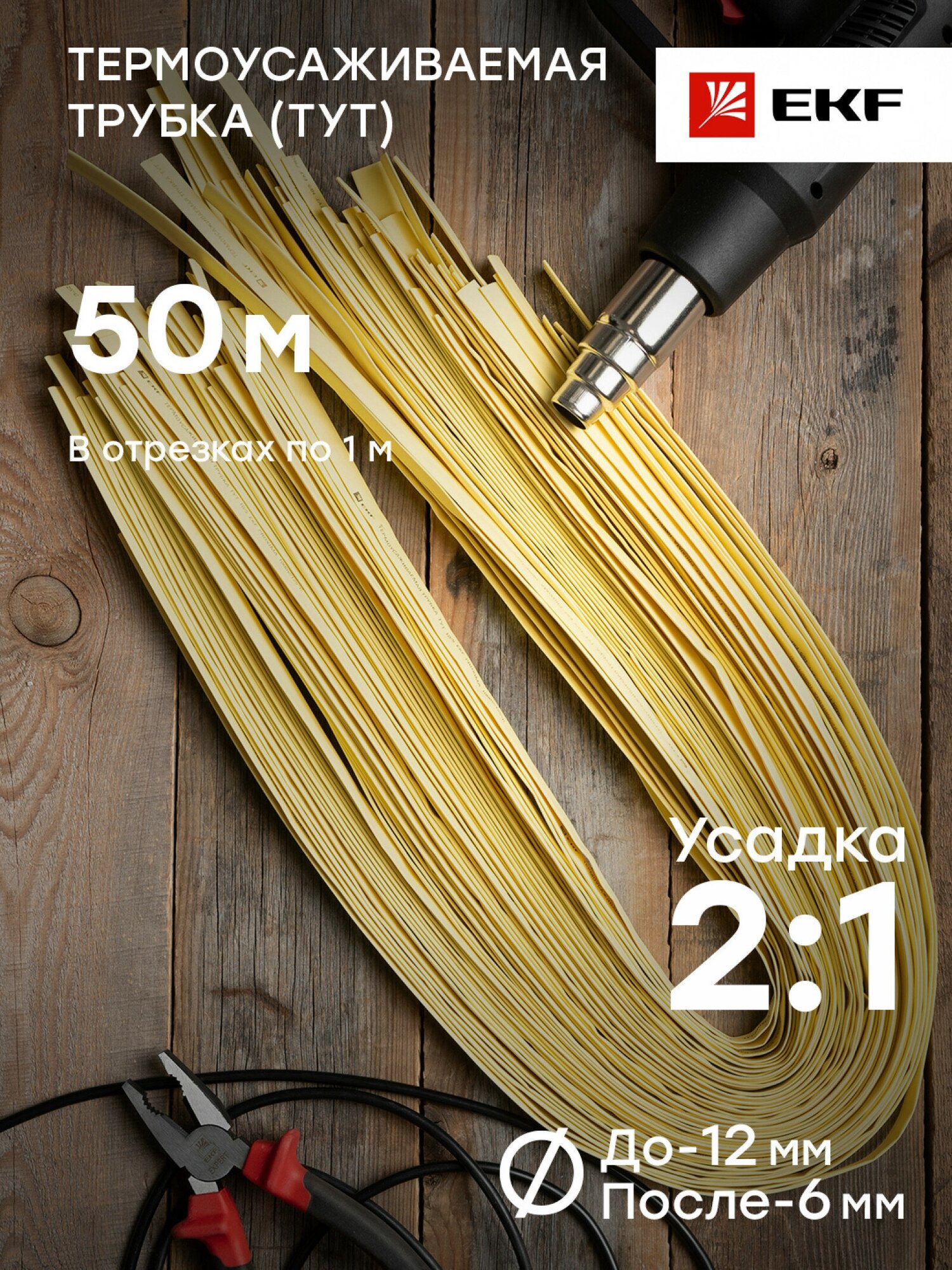 tut-12-y-1m Трубка термоусадочная ТУТ 12/6 жел. (уп.50шт) PROxima EKF
