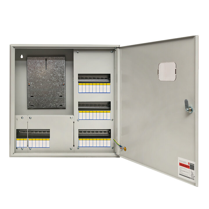Электрощиты оснащены съемной фальш-панелью, монтажной панелью и DIN-рейкой. Электрощиты защищены от коррозии и разрушающего воздействия погодных факторов благодаря фосфатированию и использованию атмосферостойкой порошковой краски.
